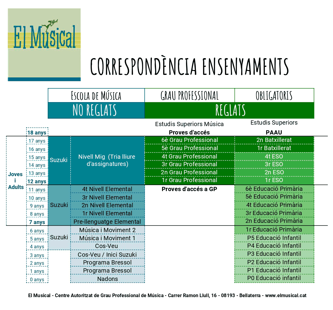 El Musical és un centre privat d’educació i recerca musical, autoritzat pel Departament d’Ensenyament de la Generalitat de Catalunya com a: